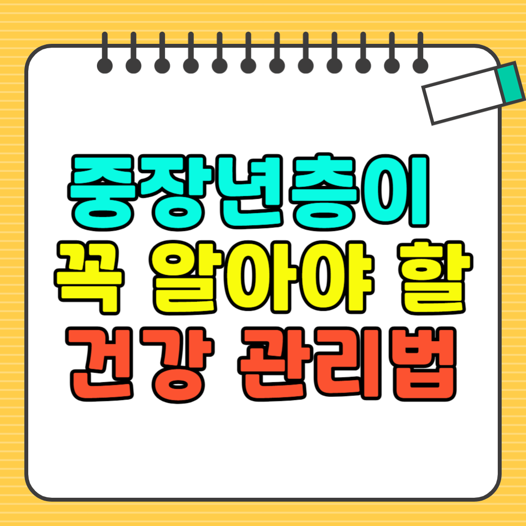 안녕하세요, 여러분! 중장년기에는 신체 변화가 본격적으로 시작되는 시기입니다. 갑작스러운 피로감, 근육 감소, 체중 증가, 그리고 혈압과 혈당 조절까지… 이런 변화들을 자연스럽게 받아들이면서도 적극적으로 건강을 관리하는 것이 중요하죠. 오늘은 중장년층이 꼭 실천해야 할 건강 관리법을 체계적으로 정리해드릴게요. 지금부터 함께 건강한 미래를 준비해봐요!